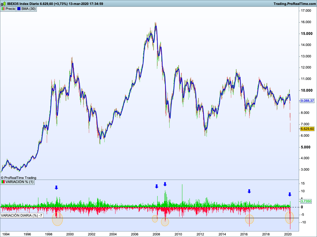 La volatilidad ha subido tanto y tan rápido con el pánico generalizado en los mercados que se han batido récords históricos en caídas en muchas bolsas. Sin ir más lejos, en España hemos vivido la peor sesión del Ibex nunca antes vista.