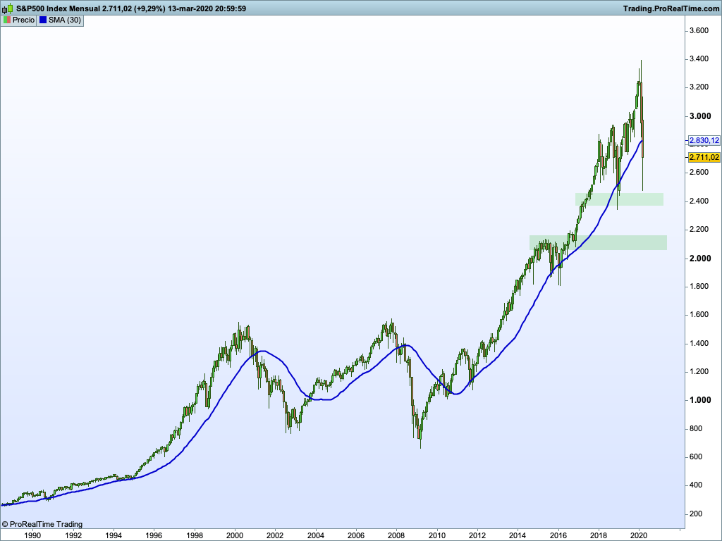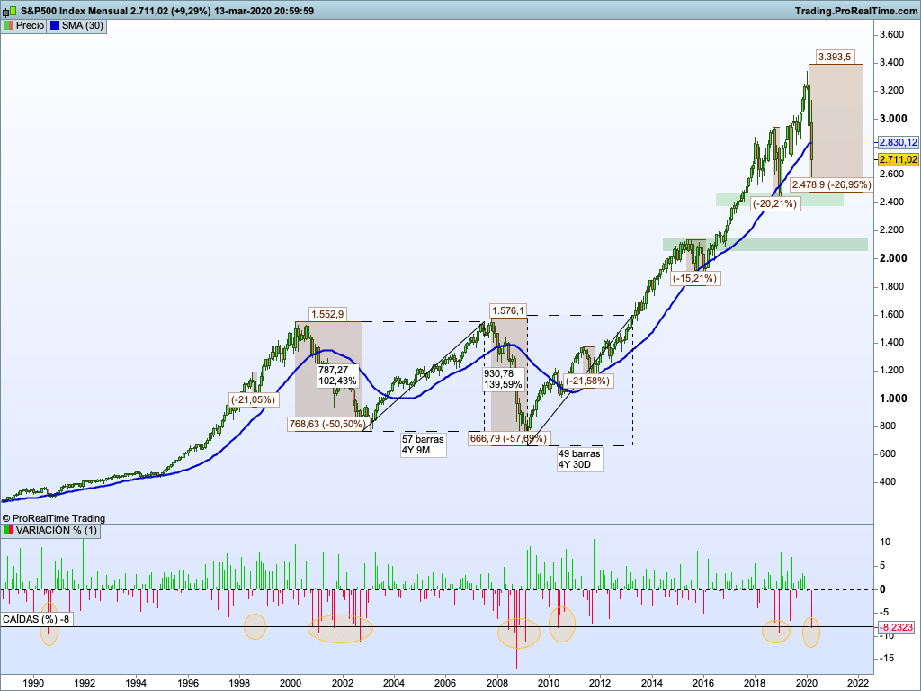 Teniendo en cuenta lo que han caído el resto de mercados, una caída del 26,95% es bastante light… Ahora mismo está en niveles de 2018. El mercado americano, a pesar de haber perdido casi un 27% de su valoración sigue siendo de momento un mercado alcista en el largo plazo.