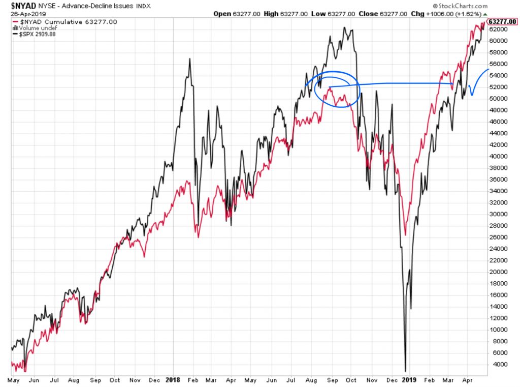 La verdad es que si observamos la línea de avance descenso vemos que ésta ya superó sus máximos anteriores hace tiempo. Esto es sin duda una buena señal y tenemos que tenerlo en cuenta porque cuando esto ocurre es muy probable que el índice acabe rompiendo máximos.