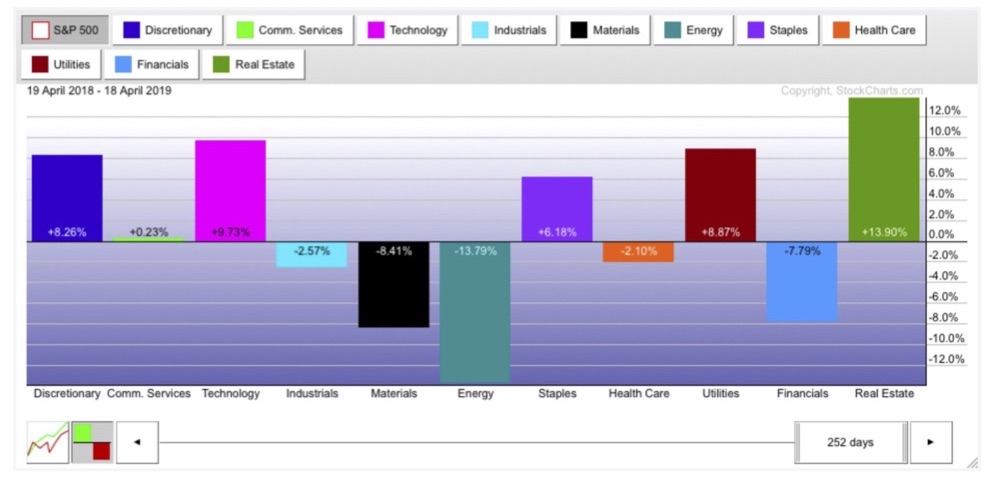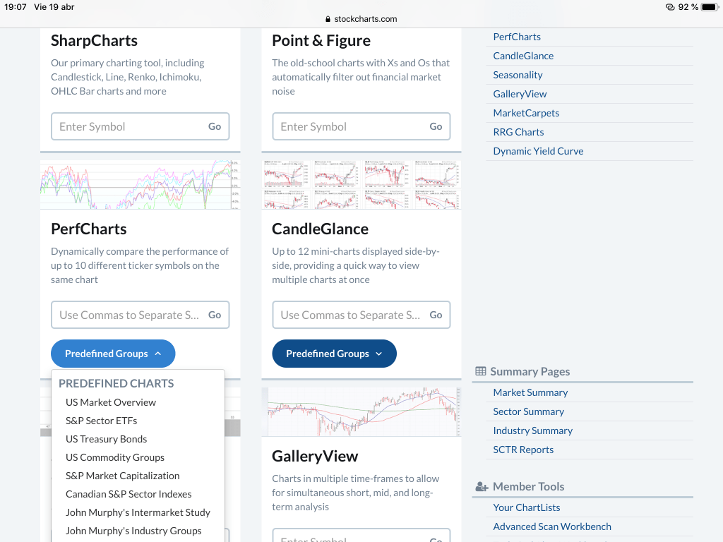 Con StockCharts.com podemos ver de forma muy rápida qué sectores son los que mejor lo están haciendo actualmente.