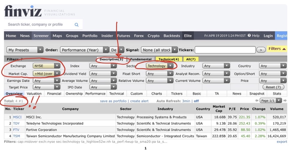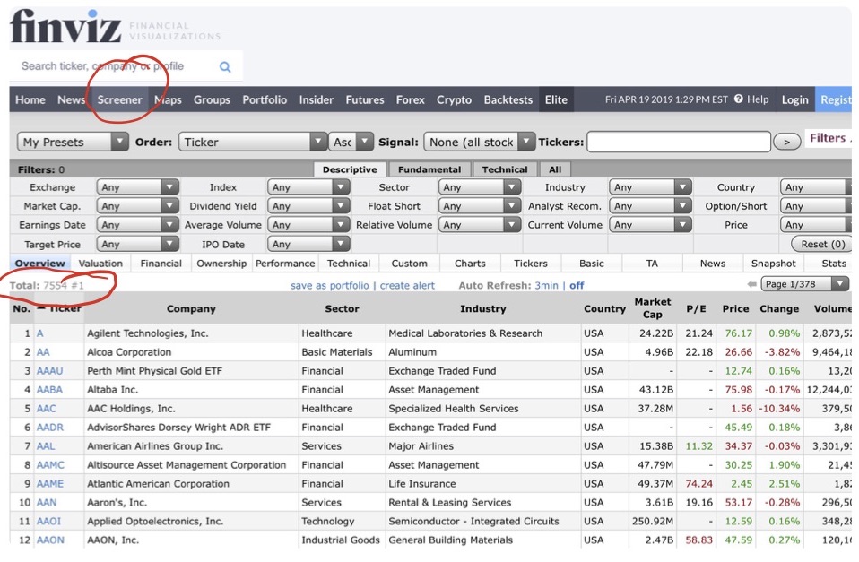 Como puedes ver aparecen muchos valores en la base de datos de Finviz, 7554 valores.