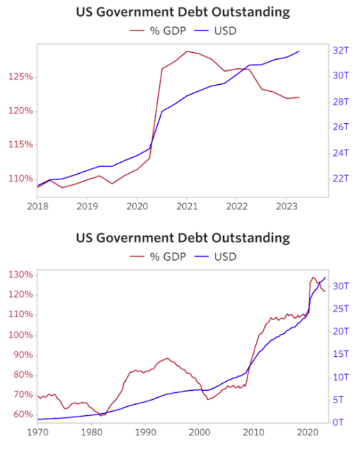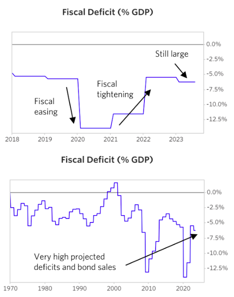 Sin embargo, a largo plazo, si analizamos la historia y determinamos lo que es probable, es prácticamente seguro que los déficits de los gobiernos centrales serán grandes, y es muy probable que crezcan a un ritmo cada vez mayor a medida que aumenten los costos del servicio de la deuda.