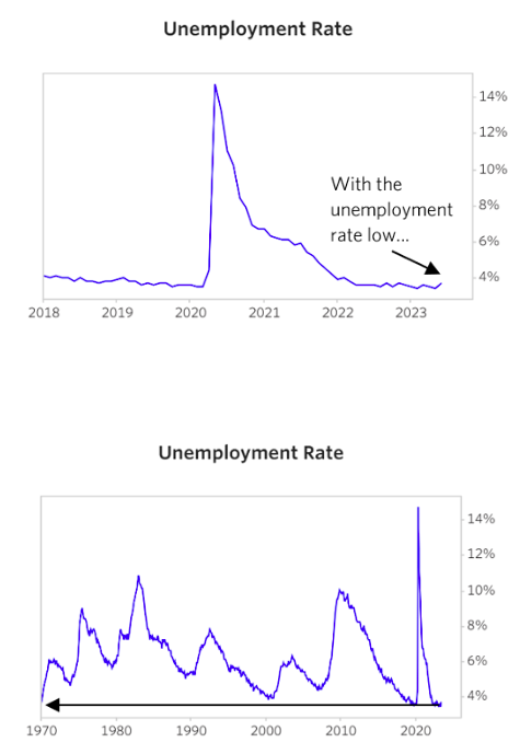 Como puede ver, si bien la tasa de desempleo aumentó durante la COVID, ahora ha caído al nivel más bajo desde finales de los años 60.