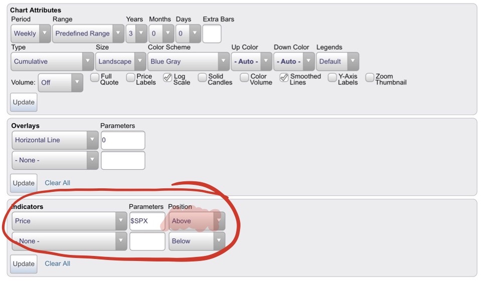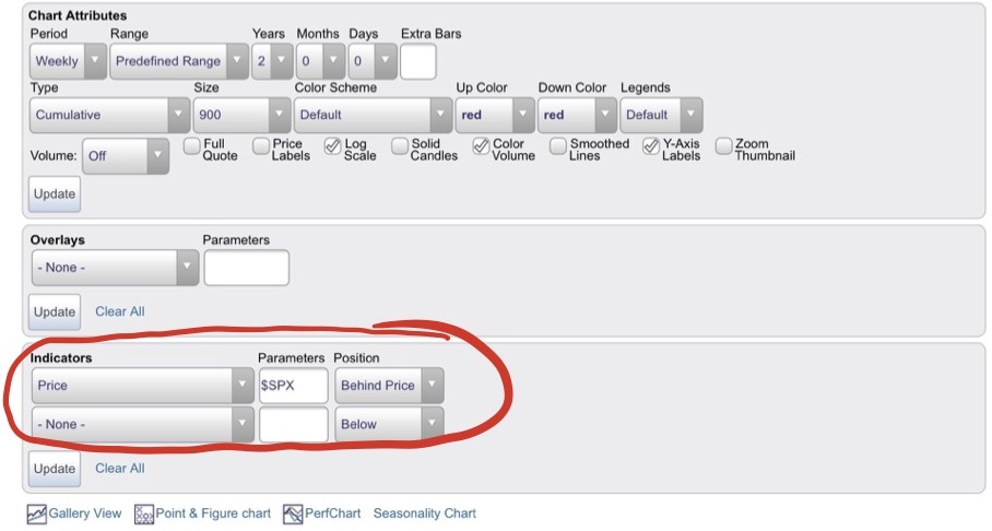 Si queremos podemos añadir el índice Sp500 o cualquier otro que queramos. Sólo tenemos que introducirlo en el recuadro de «Indicators».